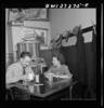 Pittsburgh, Pennsylvania. A Greyhound bus driver signing in for a bed at the dormitory in the garage. A porter checks the list and calls the drivers in time for their runs