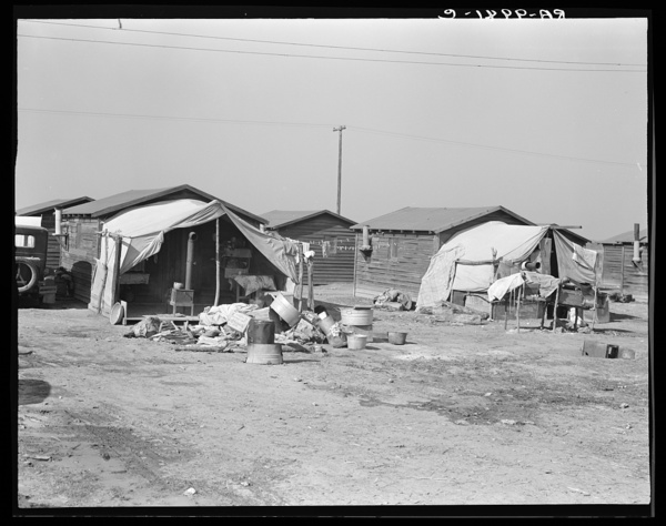 Housing for migratory workers in cotton, five miles north of Corcoran, California. The famous strikers' concentration camp in 1933 was at Corcoran camp