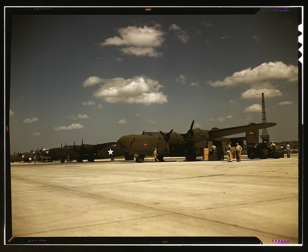 Consolidated transport planes being loaded, Consolidated Aircraft Corp., Fort Worth, Texas
