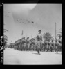 Tunis, Tunisia. French troops passing the reviewing stand in the Allied victory parade along Avenue Gambetta as American planes fly overhead in a show of Allied might