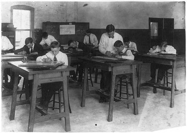 Continuation School - Temporary Quarters. Drawing class at Dimond School. Location: Fall River, Massachusetts / Lewis W. Hine.