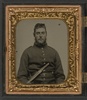 Unidentified soldier in Union uniform with large Bowie knife on belt