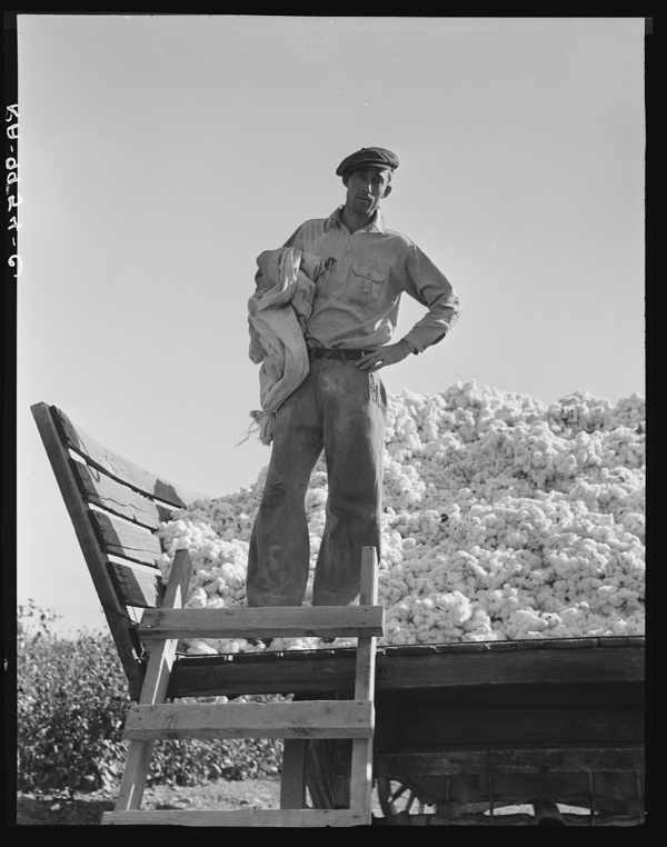 Partially loaded cotton wagon. Southern San Joaquin Valley, California