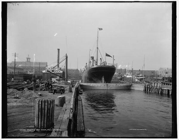 Russian war ship Retvizan sic, day before launching, Cramp's ship yards, Philadelphia