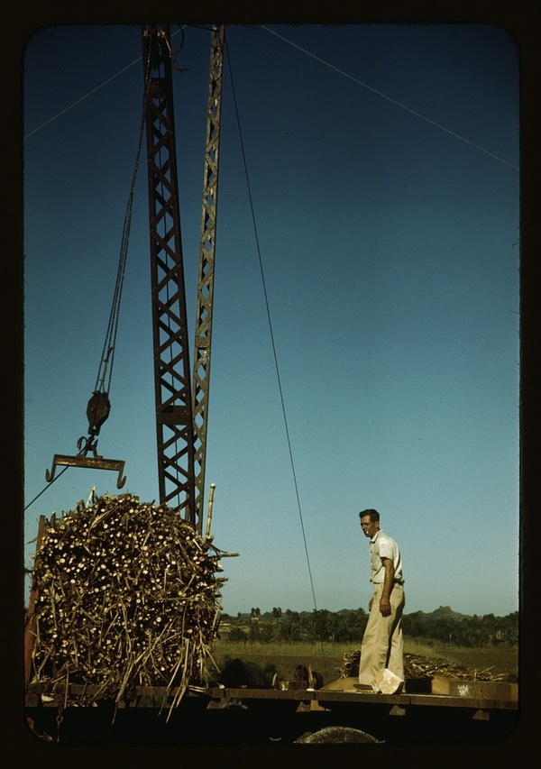 Crane at a "central" sugar cane gathering place, San Sebastian vicinity, Puerto Rico