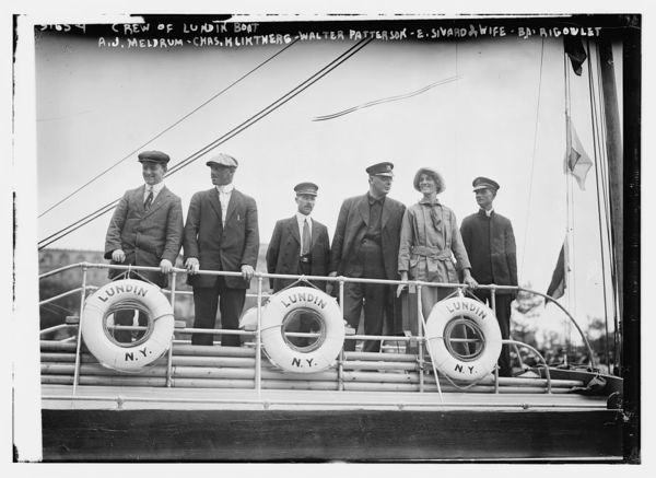 Crew of Lundin Boat, A.J. Meldrum, Chas. Kliktherg, Walter Patterson, E. Sivard & wife, BA Rigoulet