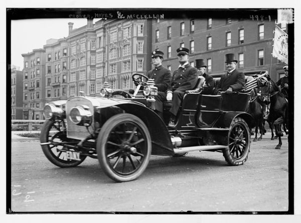 Croker, Hayes and Mayor McClellan in carriage, New York