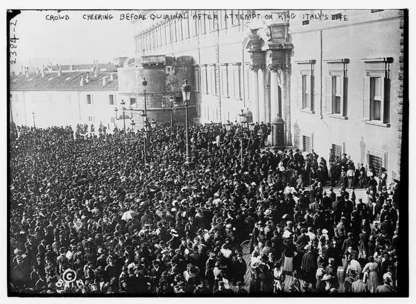 Crowd cheering before Quirinal after attempt on King of Italy's life