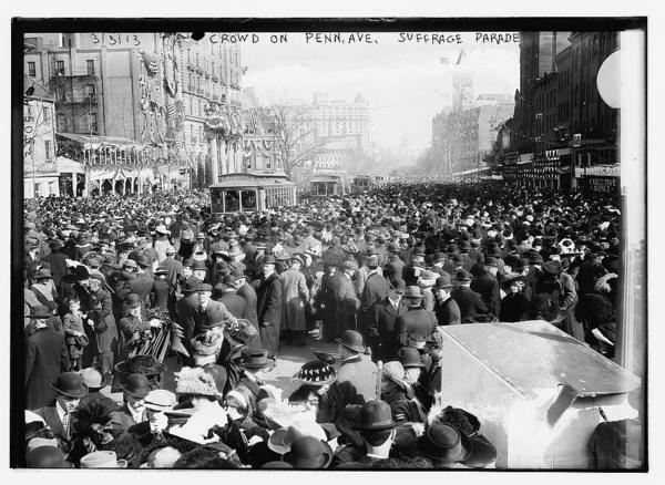 Suffrage parade - Mrs. Mary Bair, Mrs. W. Albert Wood, and Mrs. R.S. i.e., Richard Coke Burleson
