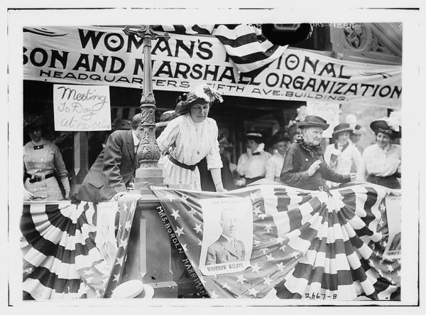 Daisy Harriman addresses a Democratic rally in Union Square, New York City