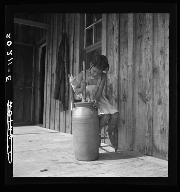 Daughter of tenant churning butter. Randolph County, North Carolina