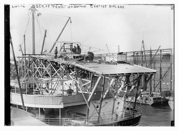 Deck of "Pennsylvania" showing the Curtiss biplane