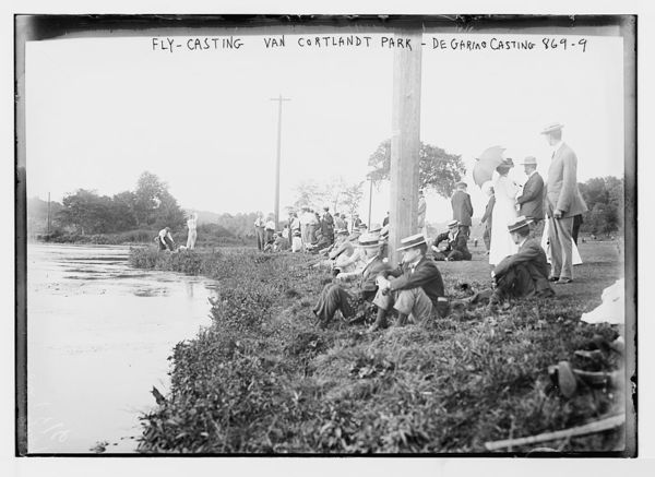 DeGarmo fly-casting, spectators, VanCortlandt Park, N.Y.