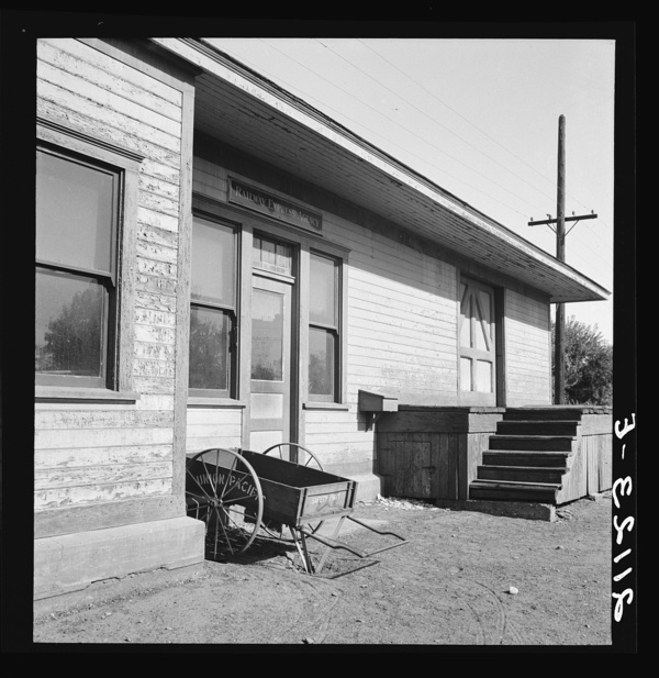 Detail of railroad station painted "railroad yellow." Irrigon, Morrow County, Oregon