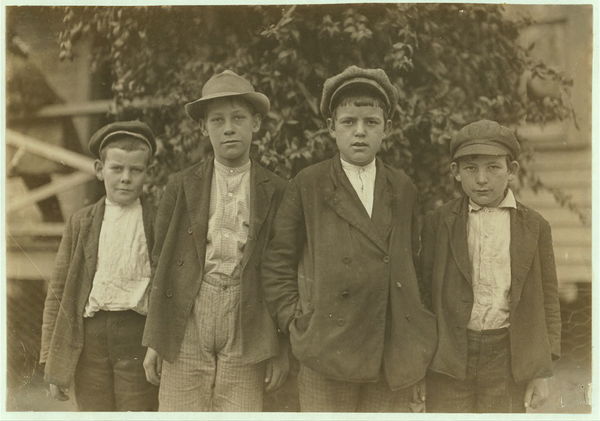 Dickson Mill, Laurinburg, N.C. Fred Butler, (smallest). Been in mill 2 years. Others one year. Witness, S.R. Hine. Location: Laurinburg, North Carolina.