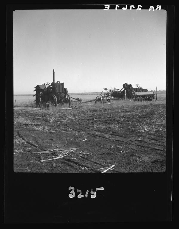 Discouraged farmers have been leaving this area over a period of years, leaving their heavy equipment in the fields. Mills, New Mexico
