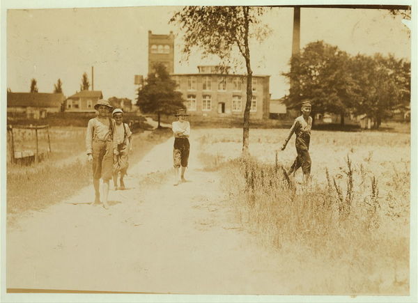 Doffer boys going to dinner. Tupelo (Miss.) Cotton Mills. Location: Tupelo, Mississippi.