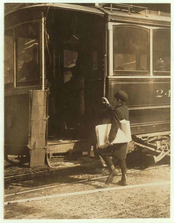 Donato Dandrea, hopping cars to sell papers at 10 A.M. during school hours. (See No. 1213.) Location: Buffalo, New York (State)