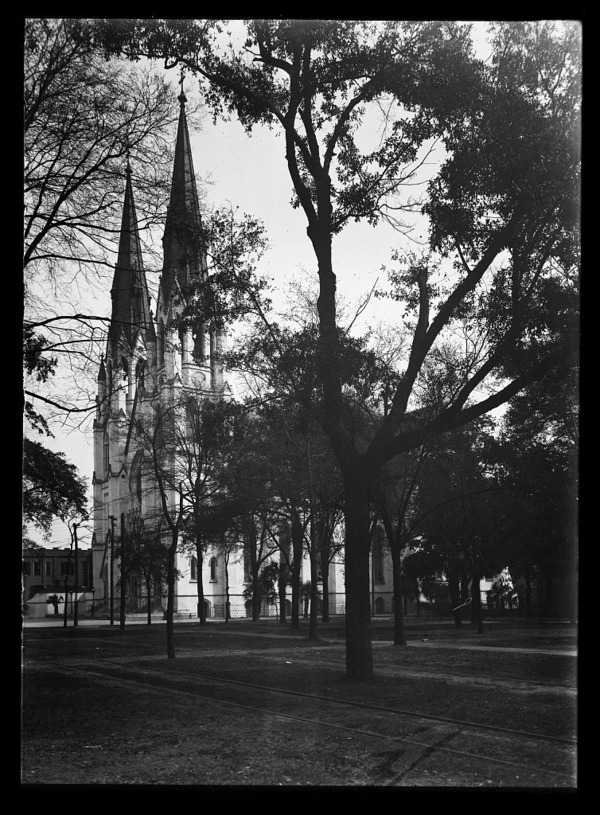 Double-spired church, possibly Savannah, Georgia