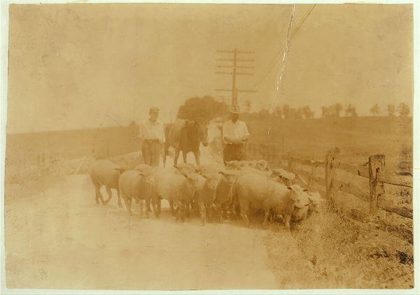 Driving sheep to town. Gartland boy (did not get first name) Mother runs the Farmers Hotel, Winchester. Location: Clark Co.–Winchester, Kentucky / Lewis W. Hine. 1916