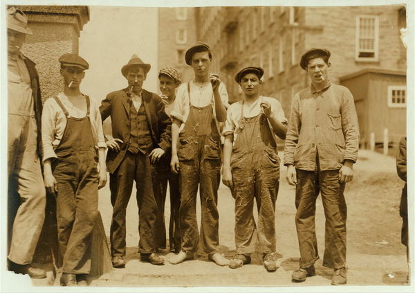 Drop-wire boys. Granite Mill #2. Noon. Location: Fall River, Massachusetts / Lewis W. Hine.