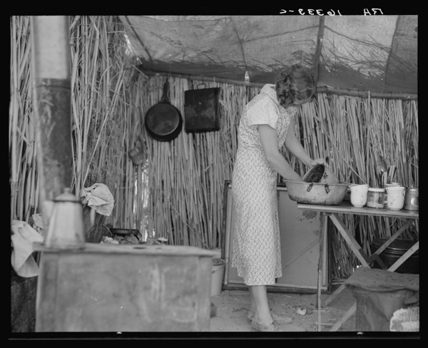 Unemployed family from the Rio Grande Valley, Texas, camped on a river bottom near Holtville, California