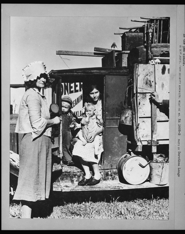 Drought refugees from Oklahoma looking for work in the pea fields of California. Near San Jose Mission
