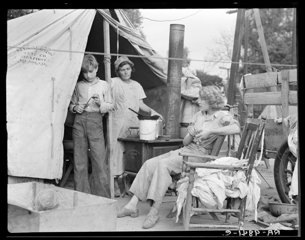 Drought refugees from Texas encamped in California near Exeter. Seven in family