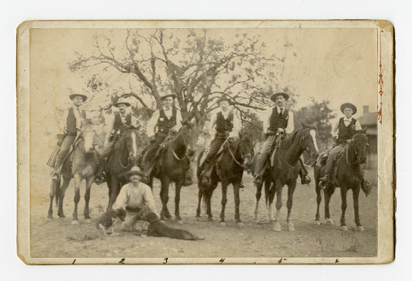 D.W. Bass, mounted inspector of customs and other Texas Rangers on scout patrol