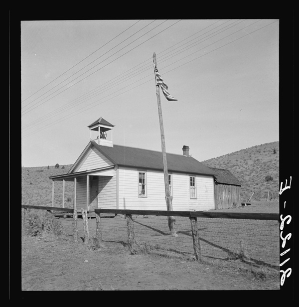 Eastern Oregon county school in clearing in the sage bush. Seven pupils enrolled. Between Pleasant Valley and Durkee, Baker County, Oregon