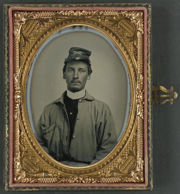 [Private W.R. Clack of Co. B, 43rd Tennessee Infantry Regiment, with saber, pistol, and small boo...