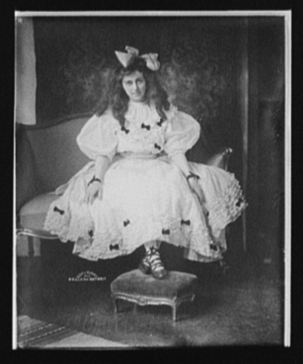 Edna Wallace Hopper, seated, full-length portrait with foot on stool