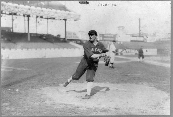 Edward Victor Cicotte, baseball player for Chicago White Sox throwing ball