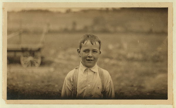 Eight-year old Jack on a Western Massachusetts farm. He is a type of child who is being overworked in many rural districts. See Hine Report, Rural Child Labor, August, 1915. Location: Western Massachusetts, Massachusetts.