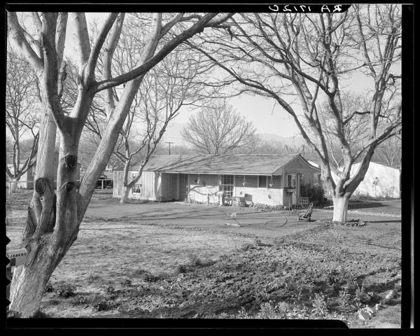 El Monte federal subsistence Homesteads. One hundred occupied homes, each with three quarters of an acre. Average yearly income eight hundred dollars. California