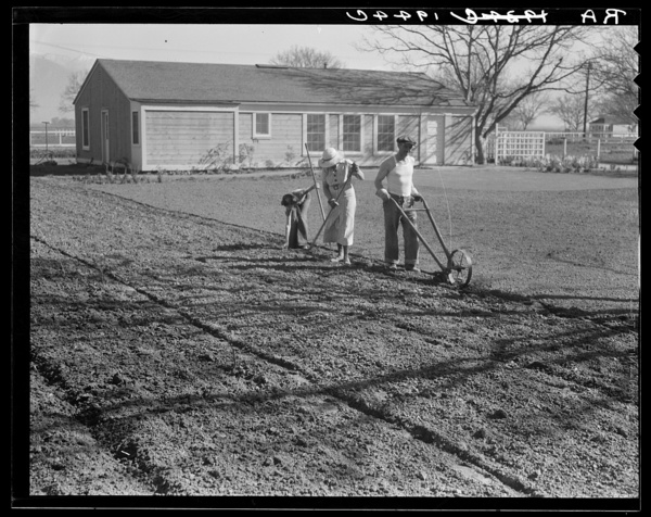 El Monte federal subsistence housing. Three-room house. Seventeen dollars and seventy cents rent applied on purchase. Father: carpenter. California