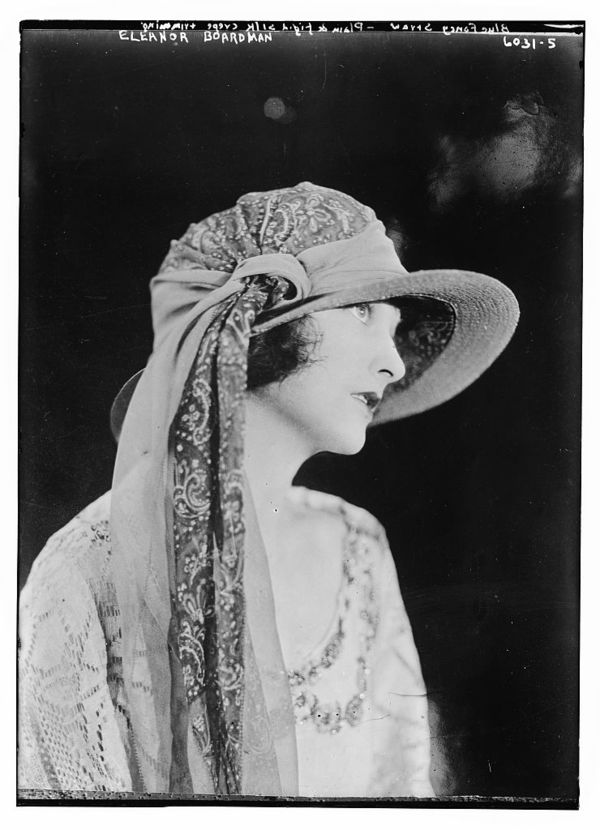 Eleanor Boardman (wearing blue fancy straw; plain & rigid silk crepe & trimming)