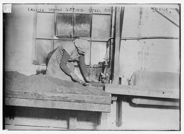 English women sifting steel grit