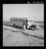 Dead Ox Flat. Children get into school bus on a fall morning. Malheur County, Oregon. General caption number 67-1V