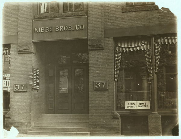 Entrance to Kibbe's Factory. Location: Springfield, Massachusetts.
