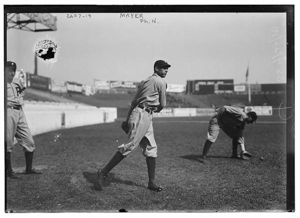Eppa Rixey, Philadelphia NL, at left, Erskine Mayer, Philadelphia NL, at center, and unknown player at right at the Polo Grounds, New York