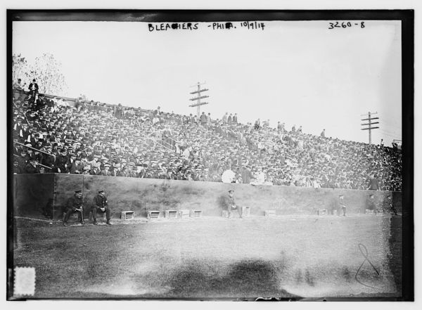 Fans in bleachers at Shibe Park, Philadelphia, for first game of the World Series (baseball)