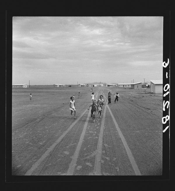 Farm Security Administration Casa Grande project, Arizona. Large-scale corporate farming by sixty-two families who divide profits. Children in this group came from eight different states