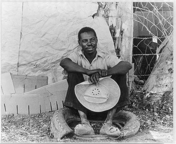 field worker. Holtville, Imperial Valley, California. He has just made himself shoes out of that old tire