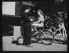Production control clerks check on the number of parts that are being delivered to the final assembly floor. The tricycle has proven very useful in aircraft plants