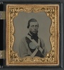 Private Peter S. Arthur of Company B, 11th Virginia Infantry Regiment, in uniform with secession badge and Virginia state seal breastplate