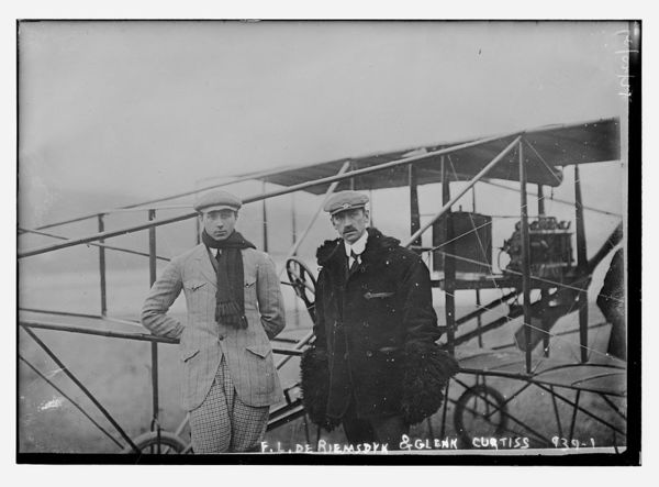 F.L. de Riemsdyk and Glenn Curtiss standing by aeroplane