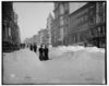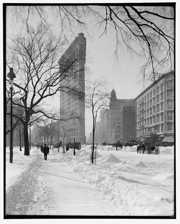 Flat-iron i.e. Flatiron Building corner after snow storm, New York
