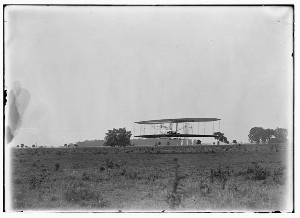 Flight 30: machine close to the ground, Wilbur piloting, covering a distance of 784 feet in 22 3/4 seconds; Huffman Prairie, Dayton, Ohio