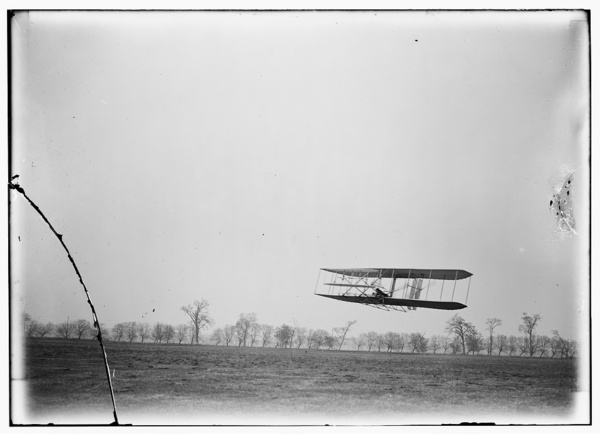 Flight 85: Orville in flight over treetops, covering a distance of approximately 1,760 feet in 40 1/5 seconds; Huffman Prairie, Dayton, Ohio